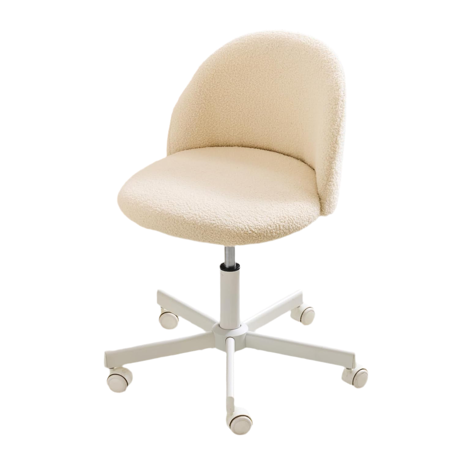Ihastuttava minimalistisen tyylin ja mukavuuden yhdistelmä, THE ARISTOCRAT on suunniteltu piristämään kotitoimistoasi, makuuhuonettasi tai työtilaasi. Pehmeään teddyfleecekankaaseen kääritty ja tukevan rungon tukema se yhdistää viihtyisän estetiikan ja jokapäiväisen käytännöllisyyden.