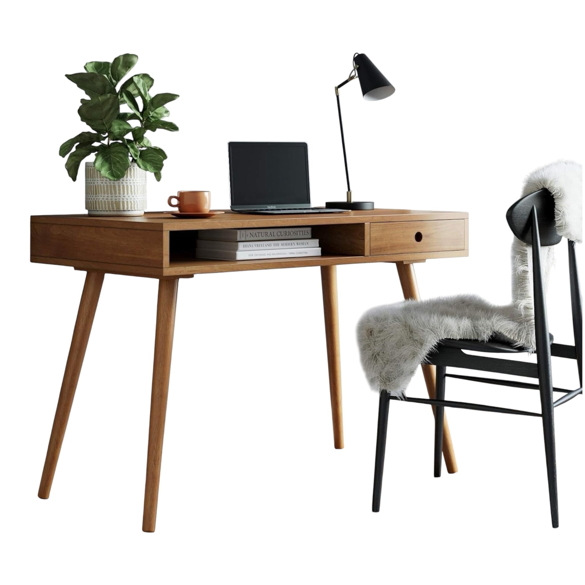 Paranna työtilaasi THE PARKERilla, tyylikkäällä pähkinäpuutyöpöydällä, joka yhdistää modernin tyylin ja älykkäät säilytysratkaisut. Kestävällä MDF-pöytälevyllä ja massiivikumipuujaloilla, joissa on akaasia- tai vaalea pähkinäpuuviimeistely, se sopii täydellisesti tuomaan ripauksen skandinaavista viehätysvoimaa mihin tahansa kotitoimistoon tai luovaan tilaan.