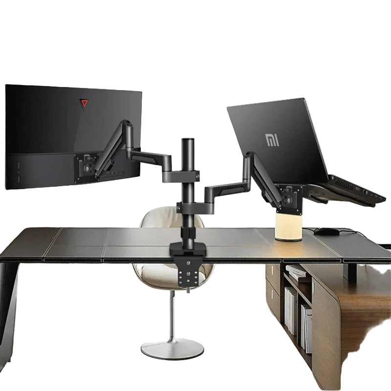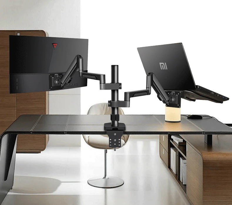 A powerful dual-arm workstation upgrade designed for creators, professionals, and multitaskers. THE ARMS allows you to mount both a monitor and a laptop with full motion adjustment β giving you more space, better ergonomics, and the perfect viewing angle every time.