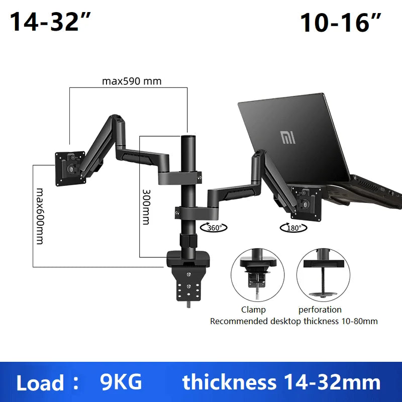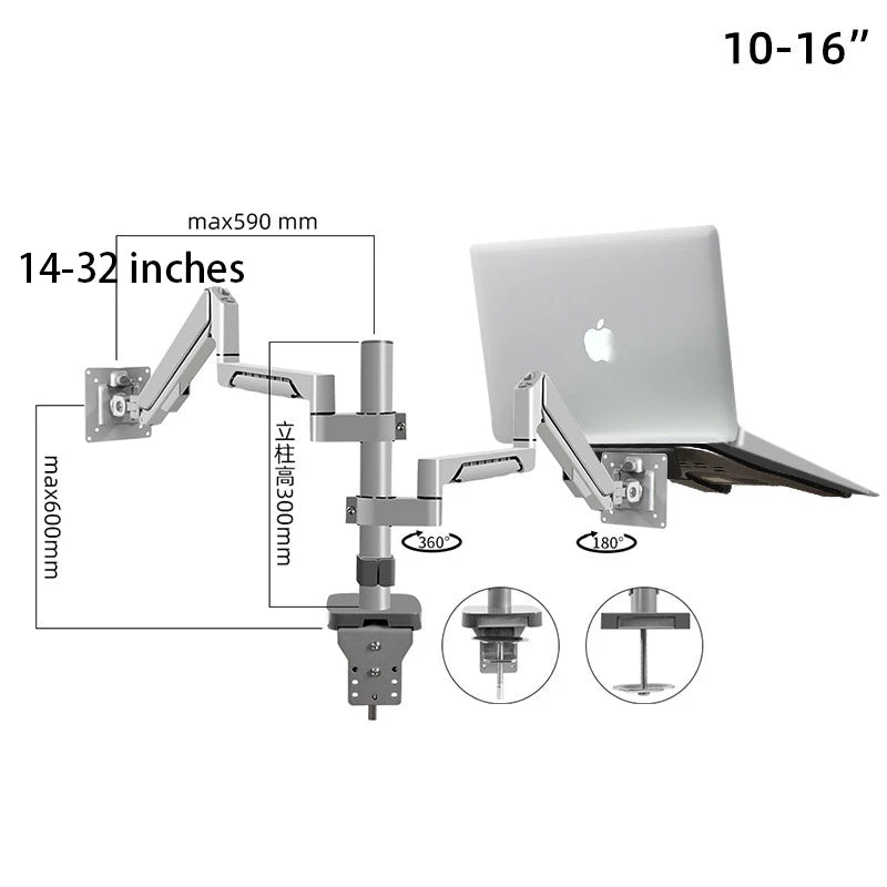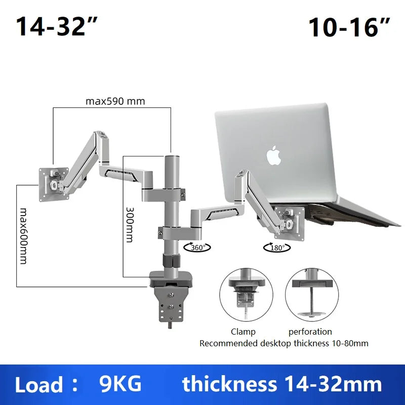 πͺ Dual-Arm System β Supports one monitor + one laptop simultaneously