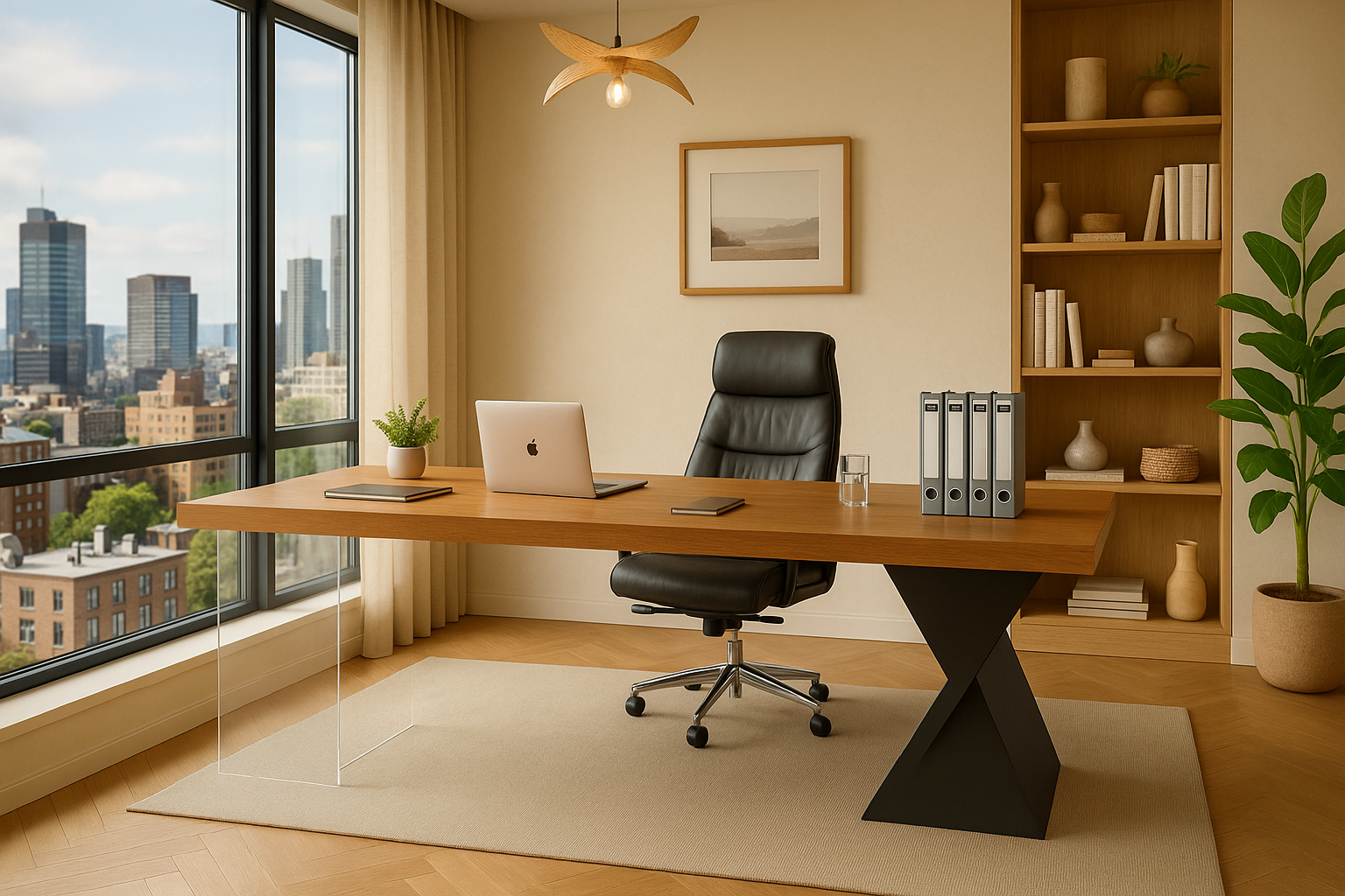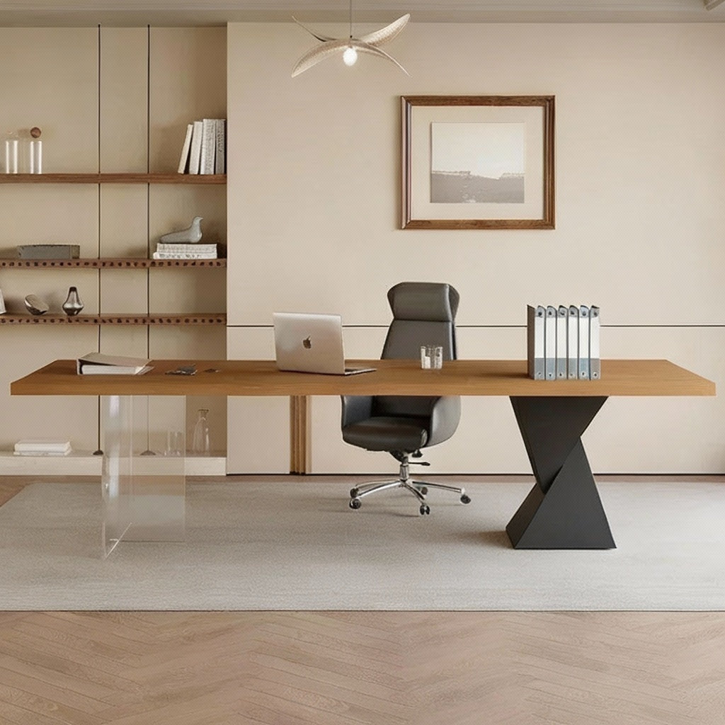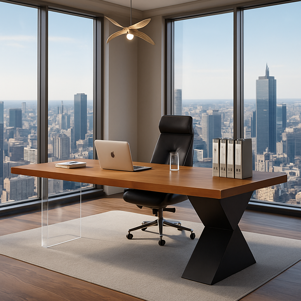 Meet THE CREATOR — a bold executive desk that combines geometry and craftsmanship for those who design, build, and lead. Its sculptural base and natural wooden top deliver both power and sophistication, turning any office into a modern creative space.